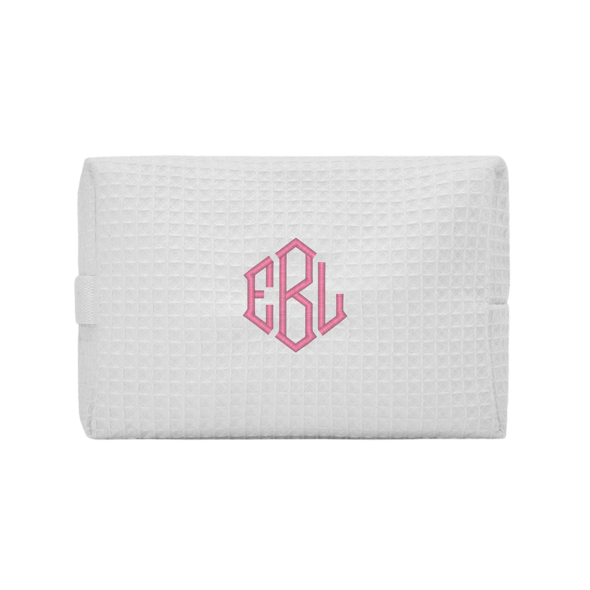 The Monogram embroidered cotton waffle pouch is a great size to toss into your tote or purse, but large enough to keep your necessities organized. Made of cotton with a water-resistant lining, it is durable enough to carry beauty products, makeup, keys, phone, contact lenses, or cash. This big waffle pouch is a great favor for everyone in your bridal party or a great gift for the special women on your gift list.